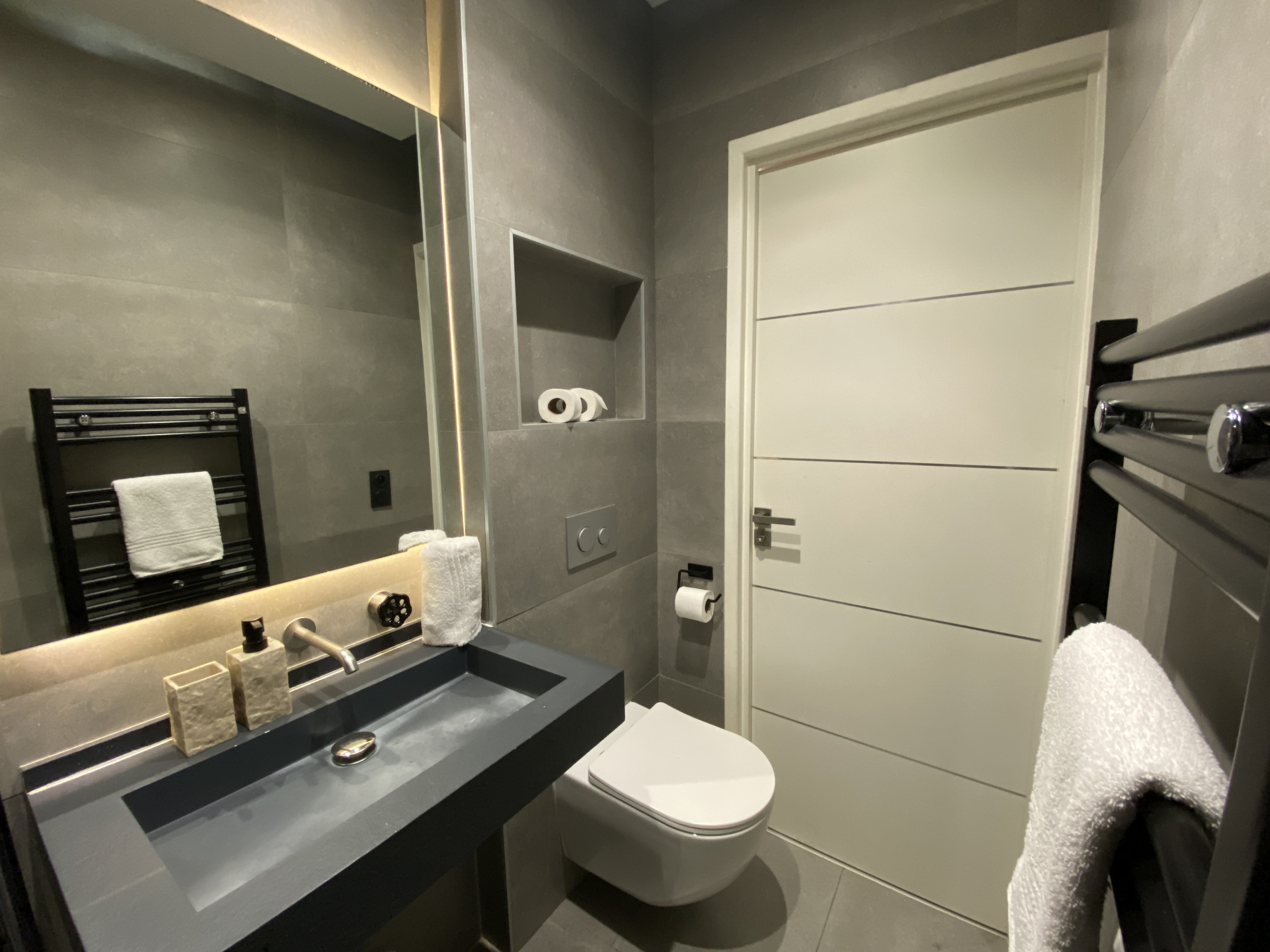 This apartment consists in a bedroom with a comfortable double bed, bathroom with shower end WC, living room with sofa and TV.