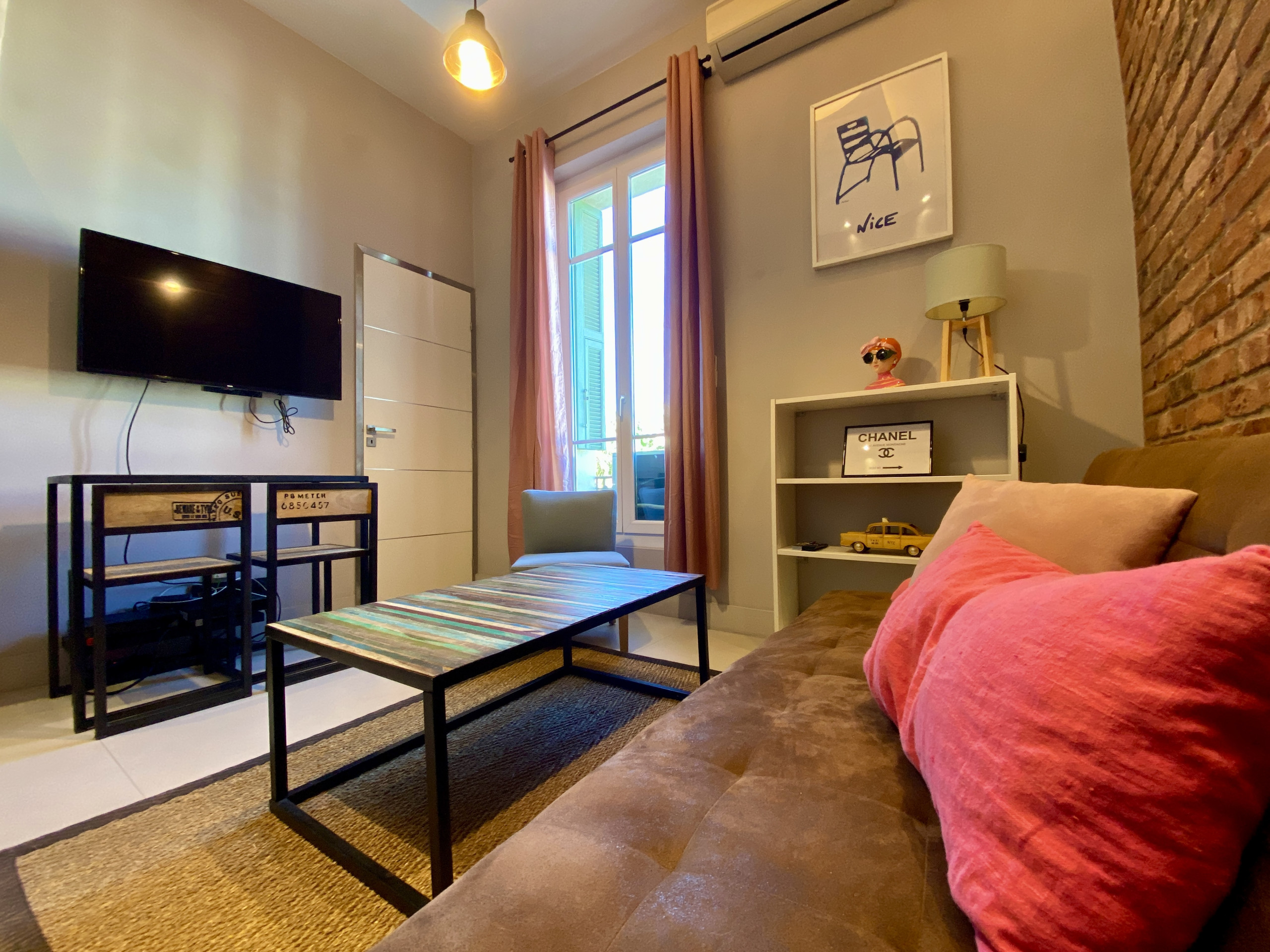 A 23 m2 one bedroom ideally located 5 minutes away from the Promenade, the beach and the Old Town with AC and Parking.
