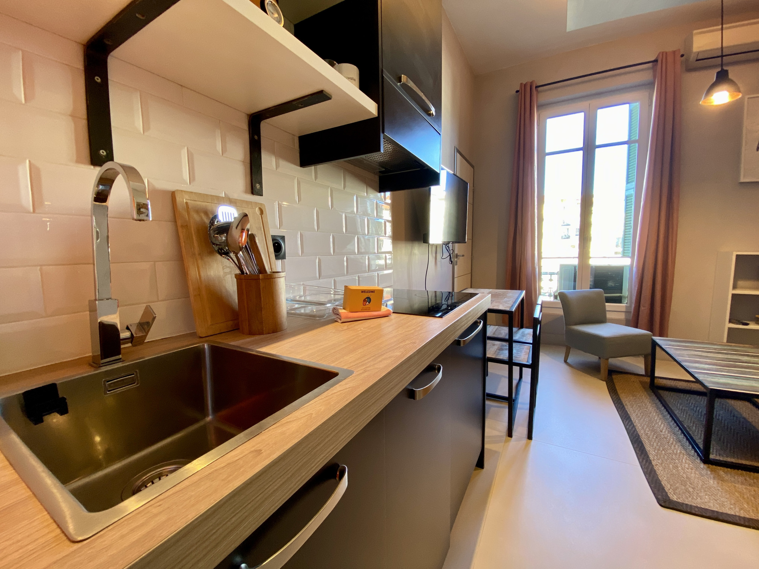 A beautiful one bedroom apartment, very bright and comfortable in the city center in Nice. The apartment is located in the « Carré d’or » district and 10 minutes walking from the beach. Absolutely all the amenities at the building's feet and a wide choice of restaurants in the area.