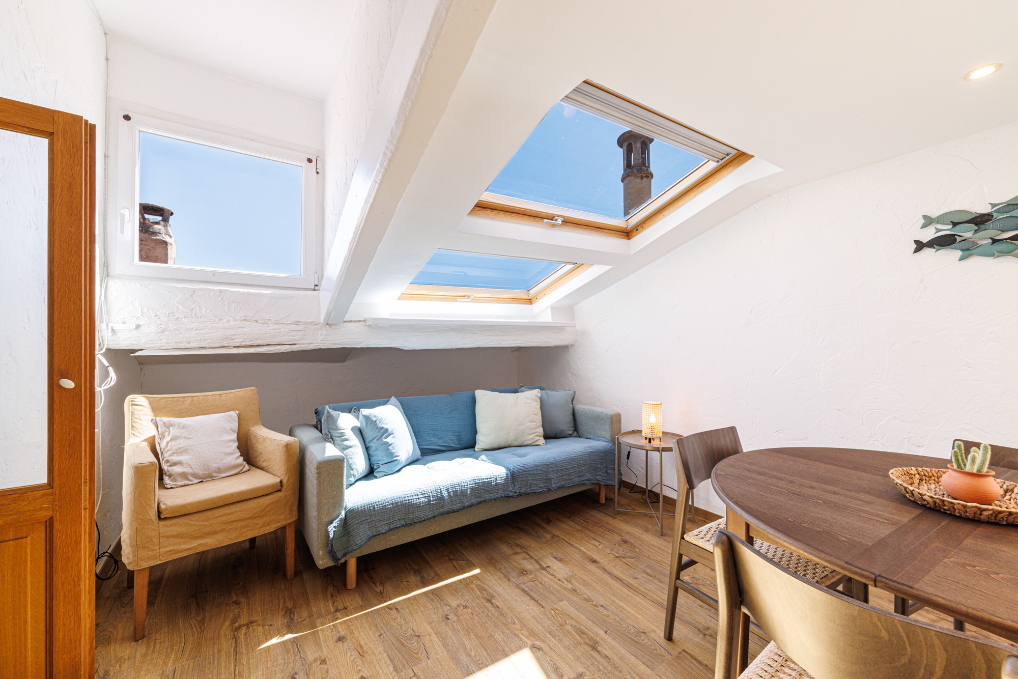Located on the fourth and top floor (no elevator) of this small building in the old town, you'll find all the comforts: space, air conditioning, an equipped kitchen, a washing machine, Wi-Fi, and more.