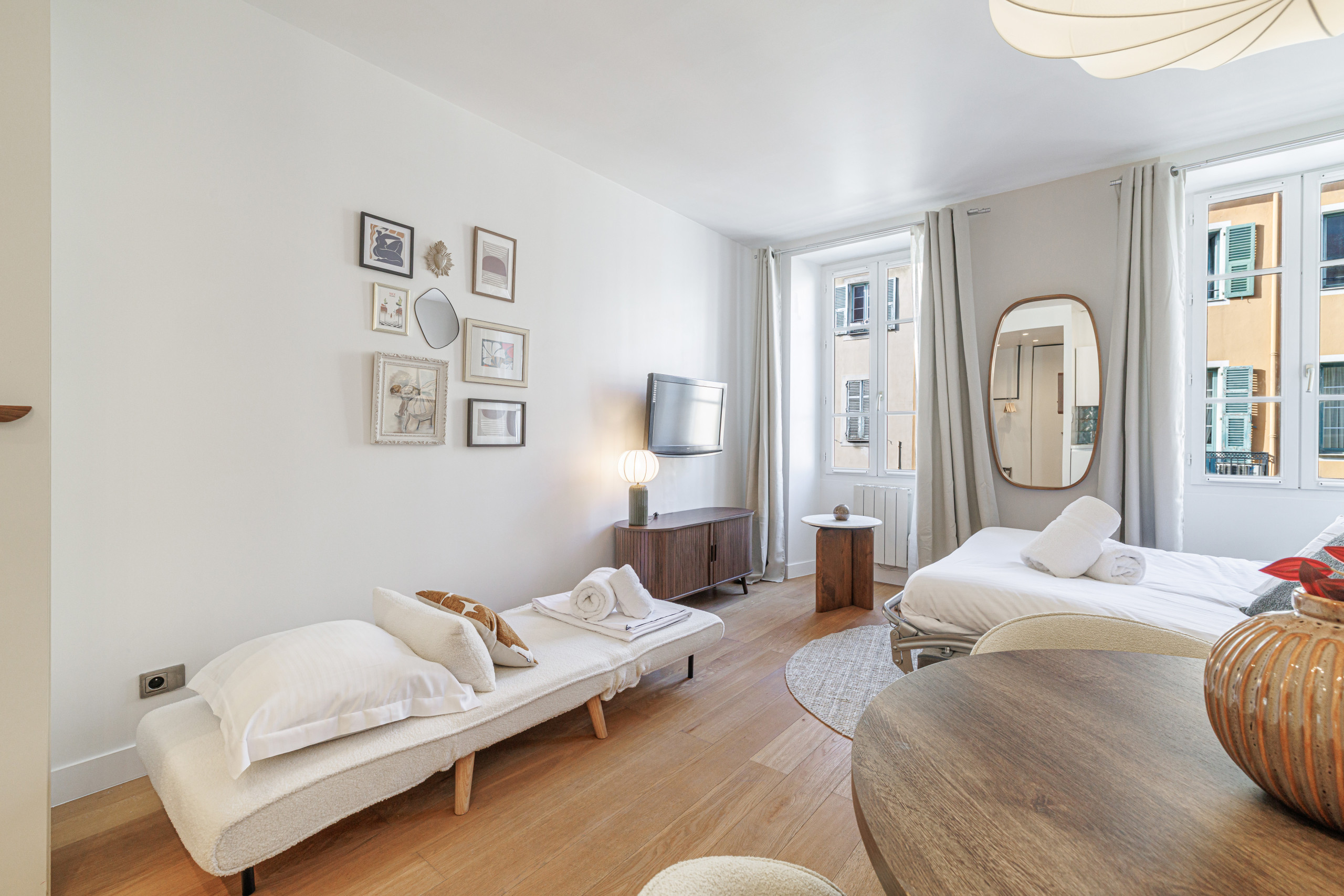 A Bright studio located between the Port of Nice and Garibaldi Square, in a lively and animated area, 100m from the tram that connects to the airport and a 10-minute walk from the beach.