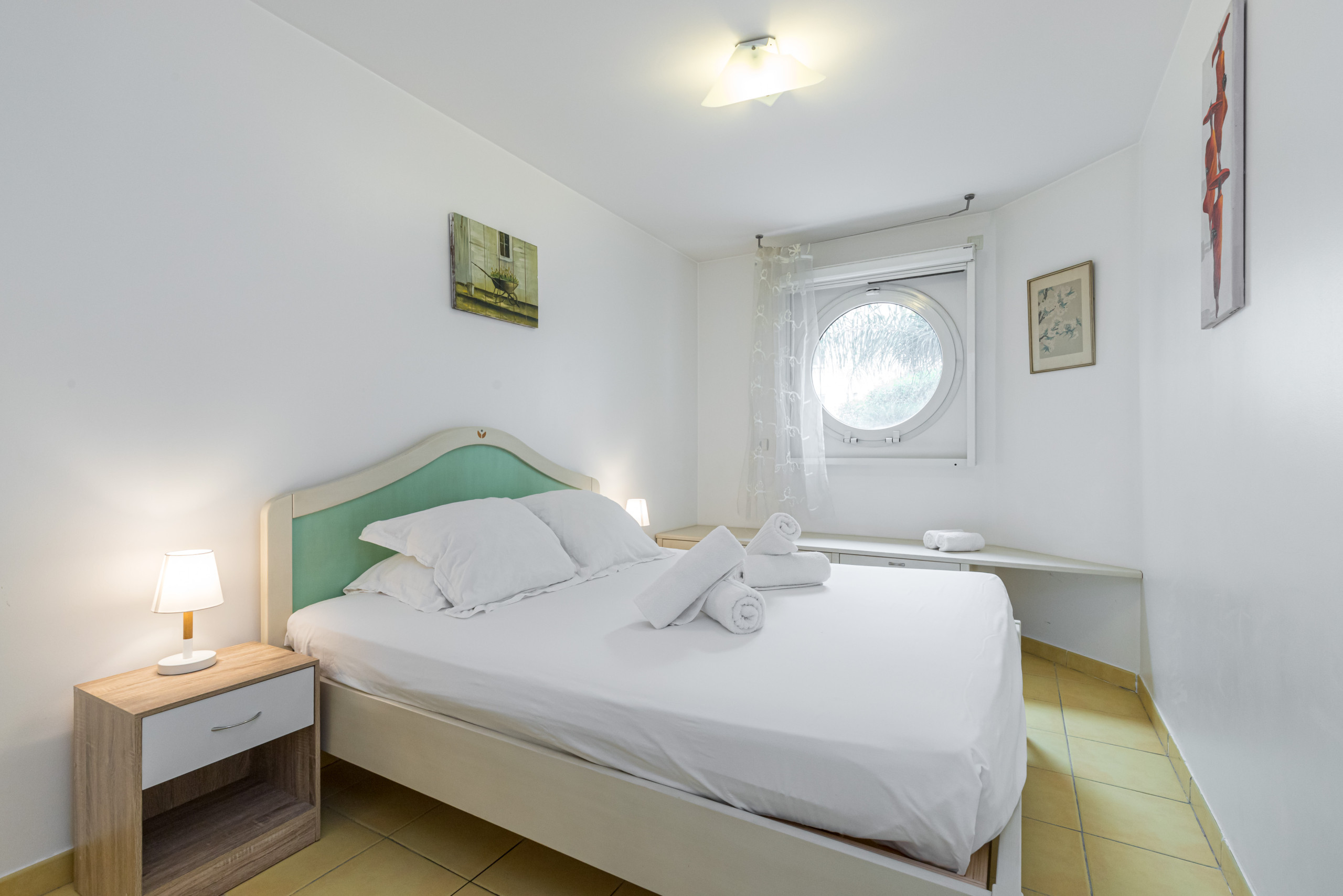 Le logement est composé d’une chambre avec un lit double confortable et rangements, une salle de bain avec douche et WC, une cuisine ouverte sur le salon salle à manger avec canapé-lit et télévision ainsi qu’un grand balcon meublé.