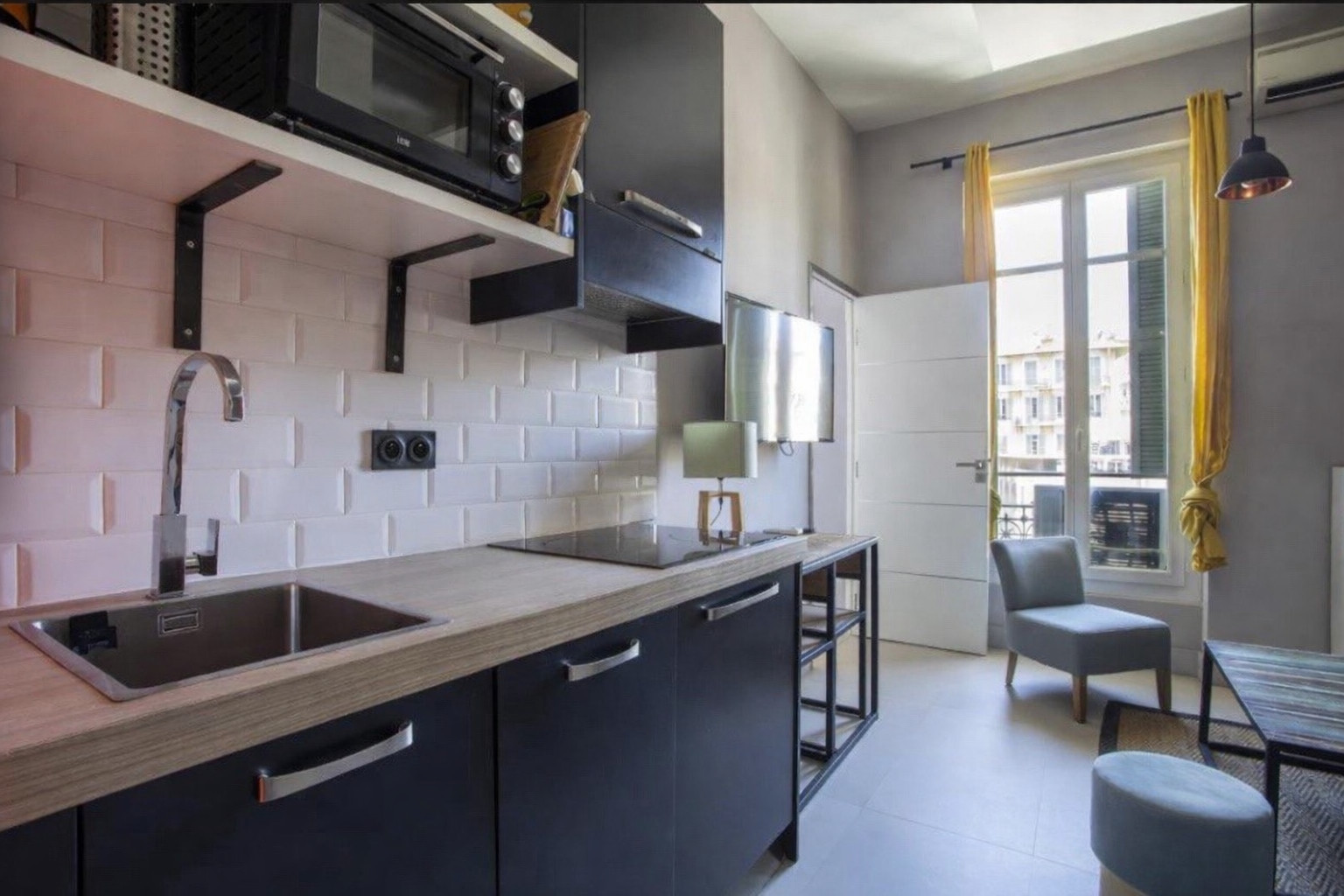 Un 2 pièces de 23m2 idéalement situé, proche de la Place Masséna et de la Promenade des Anglais, tout équipé avec climatisation et parking.