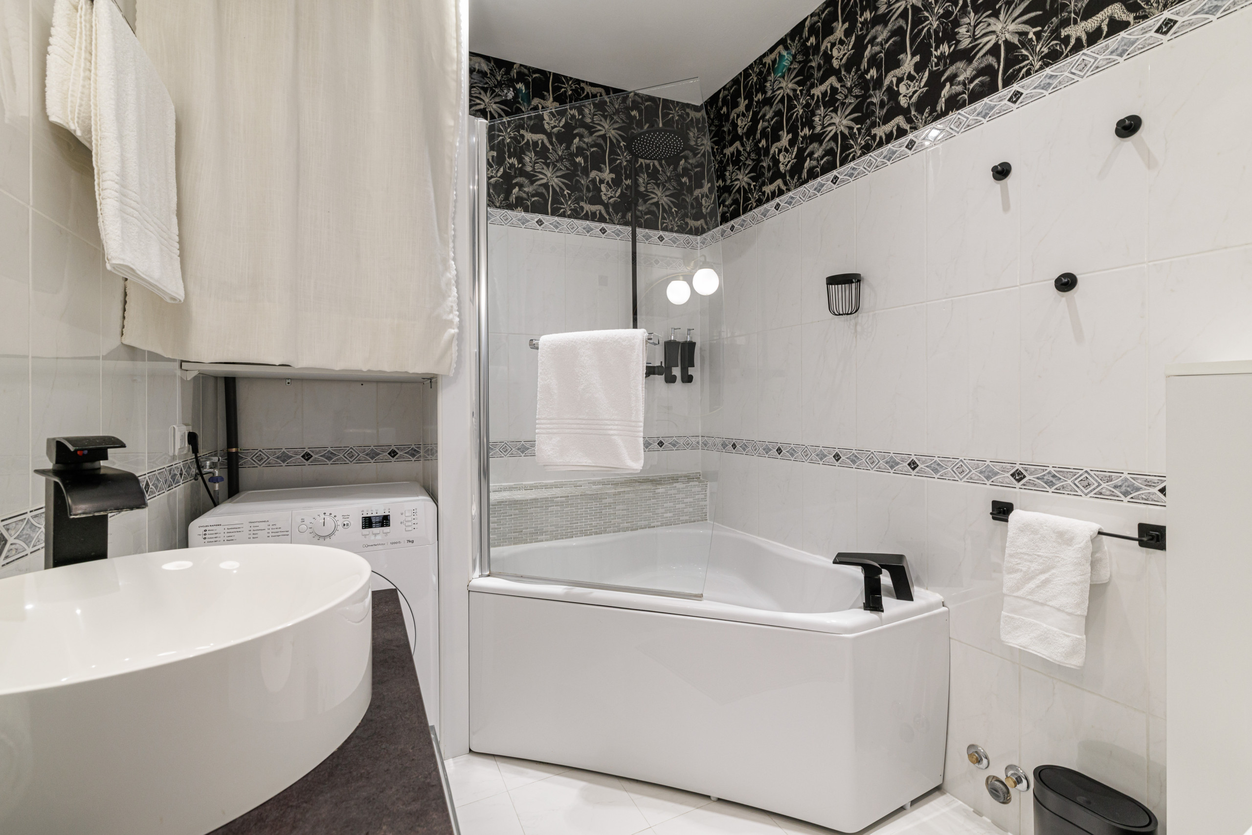 Le logement est composé d'une chambre avec un lit double confortable, une salle de bain avec douche, WC et machine à laver, un salon avec canapé-lit et télévision ainsi que d'un balcon meublé.